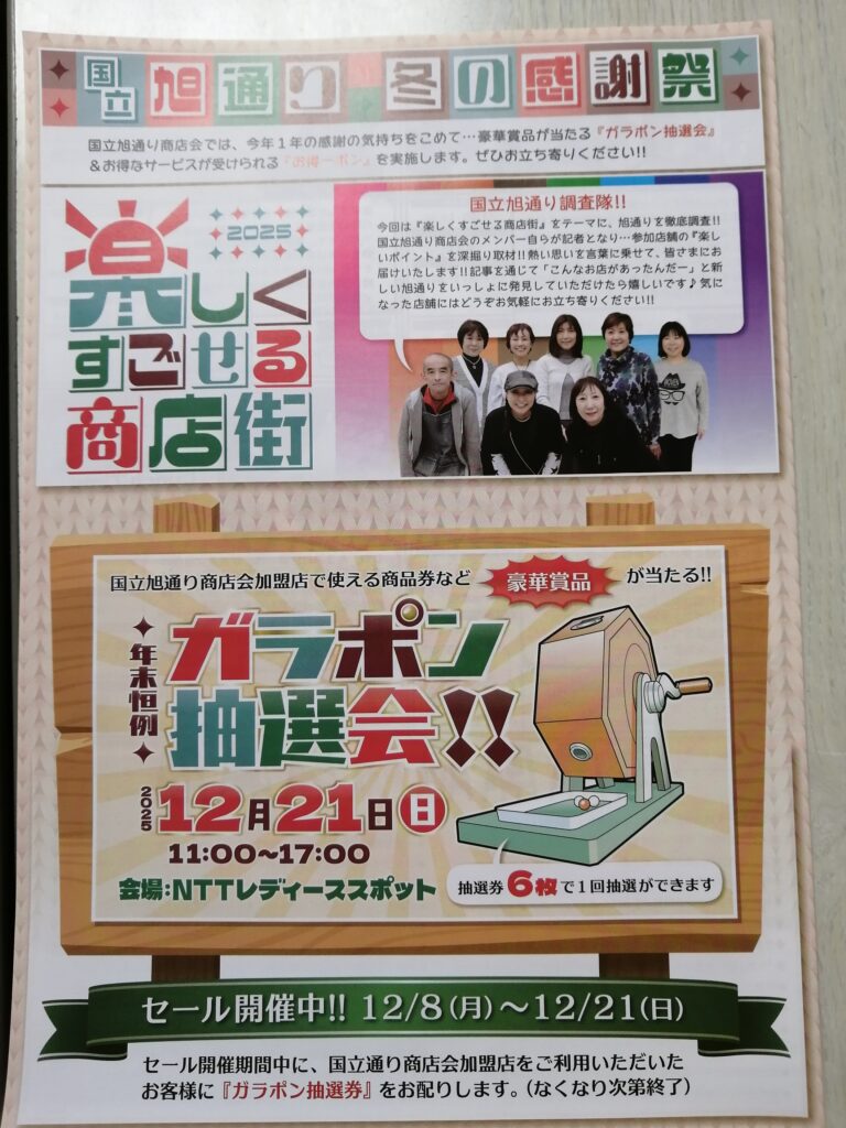 21日日曜日旭通り商店会中央のNTTレディーススポットにて抽選会を行います。